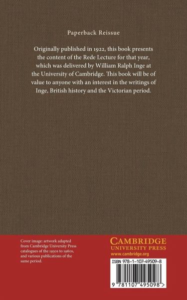 Originally published in 1922, this book presents the content of the Rede Lecture for that year, which was delivered by William Ralph Inge at the University of Cambridge. This book will be of value to anyone with an interest in the writings of Inge, British history and the Victorian period.