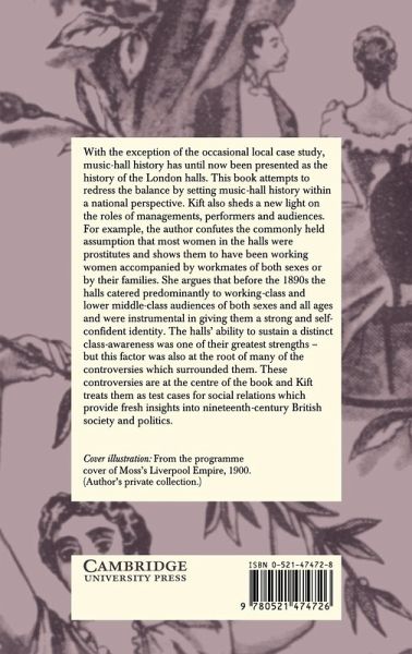 With the exception of the occasional local case study, music-hall history has until now been presented as the history of the London halls. This book attempts to redress the balance by setting music-hall history within a national perspective. Kift also sheds a new light on the roles of managements, performers and audiences. For example, the author confutes the commonly held assumption that most women in the halls were prostitutes and shows them to have been working women accompanied by workmates of both sexes or by their families. She argues that before the 1890s the halls catered predominantly to working-class and lower middle-class audiences of men and women of all ages and were instrumental in giving them a strong and self-confident identity. The hall's ability to sustain a distinct class-awareness was one of their greatest strengths - but this factor was also at the root of many of the controversies which surrounded them. These controversies are at the centre of the book and Kift treats them as test cases for social relations which provide fresh insights into nineteenth-century British society and politics.