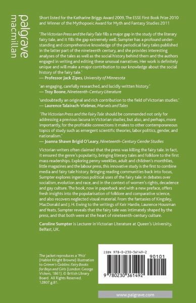 'The Victorian Press and the Fairy Tale fills a major gap in the study of the literary fairy tale, and it fills the gap extremely well. Sumpter has a profound understanding and comprehensive knowledge of the periodical fairy tales published in the latter part of the nineteenth century, and she provides interesting analyses of the tales as well as the social history behind them and the authors engaged in writing and editing these unusual narratives. Her work is definitely unique and will make a major contribution to our knowledge about the social history of the fairy tale.' - Professor Jack Zipes, University of Minnesota, USA