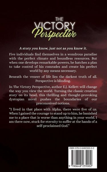 What if the power to create worlds was in the worst possible hands? Alpha and Lucifer, together with their band of brothers find themselves in a wondrous paradise. Wanting for nothing, they live a complacent life in a perfect world. But when Alpha unlocks his true power, the veneer of perfection begins to crumble. As Alpha's madness builds, jealousy and revenge take the ultimate toll on the once unspoiled society. In the face of losing everything, Lucifer must tread a dangerous path to survive. The discovery of a portal to another realm leads Alpha to build his own perfect world, creating and destroying at will. Revelling in his power. 'Playing God'. Sickened by the horrifying treatment of those through the portal, Lucifer must stop Alpha by any means necessary. Does he have the strength? What must he sacrifice to save those he loves? In The Victory Perspective, author E.J. Kellett will change the way you view the world. Turning the biblical creation story on its head, this thrilling and thought-provoking dystopian novel pushes the boundaries of our preconceived notions and challenges fundamental beliefs.