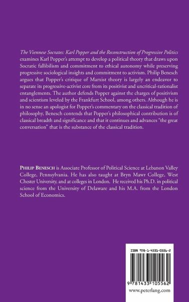 The Viennese Socrates: Karl Popper and the Reconstruction of Progressive Politics examines Karl Popper's attempt to develop a political theory that draws upon Socratic fallibilism and commitment to ethical autonomy while preserving progressive sociological insights and commitment to activism. Philip Benesch argues that Popper's critique of Marxist theory is largely an endeavor to separate its progressive-activist core from its positivist and uncritical-rationalist entanglements. The author defends Popper against the charges of positivism and scientism leveled by the Frankfurt School, among others. Although he is in no sense an apologist for Popper's commentary on the classical tradition of philosophy, Benesch contends that Popper's philosophical contribution is of classical breadth and significance and that it continues and advances «the great conversation» that is the substance of the classical tradition.