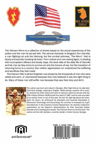 "The Vietnam Worm" is a collection of stories based on the actual experiences of the author and the men he served with. The central character is Sergeant Tom Danville, a man fighting not only the Vietcong, but the combat sickness, 'The Worm', that is slowly and secretly invading his brain. From cobras and man-eating tigers, to dealing with incompetent officers and booby traps, the book tells of the daily life of Danville and his men as they strive to survive not only the horrors of war, but the transition of returning home to a country that neither appreciated nor understood the suffering and sacrifices they had made. The Vietnam War is all but forgotten now except by the thousands of men who were called and went, or volunteered because they truly believed it was the right thing to do. Many of these men still suffer now because they saw their duty and did it.