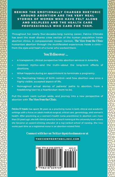 Walk through the doors of an abortion clinic in this powerful memoir from a nurse who has been there. Behind the emotionally charged rhetoric around abortion are the very real stories of women who have felt alone and helpless and the health care professionals who care for them. Throughout her nearly four-decades-long nursing career, Patrice D'Amato has seen the most diverse cross section of the human population inside abortion clinics. A compassionate mosaic memoir, The View from the Clinic humanizes abortion through the multifaceted experiences inside a clinic-from the eyes and heart of a nurse who worked there. You'll discover:A transparent, clinical perspective into abortion services in America. Common myths-and the truth-about the long-term effects of abortions. What happens during an appointment to terminate a pregnancy. The fascinating history of birth control-and how abortion was once a highly visible, accepted aspect of life. Reimagined actual stories of patients' paths to abortion, from a headstrong teen to a heartbroken mom-to-be. Pull the exam room curtain aside, and journey into a new perspective of abortion with The View from the Clinic.