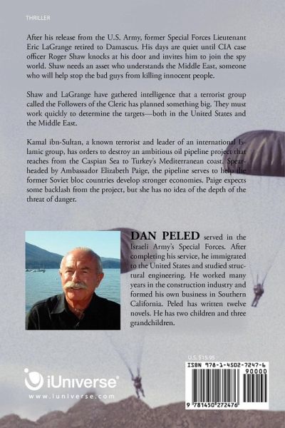 After his release from the U.S. Army, former Special Forces Lieutenant Eric LaGrange retired to Damascus. His days are quiet until CIA case officer Roger Shaw knocks at his door and invites him to join the spy world. Shaw needs an asset who understands the Middle East, someone who will help stop the bad guys from killing innocent people. Shaw and LaGrange have gathered intelligence that a terrorist group called the Followers of the Cleric has planned something big. They must work quickly to determine the targets-both in the United States and the Middle East. Kamal ibn-Sultan, a known terrorist and leader of an international Islamic group, has orders to destroy an ambitious oil pipeline project that reaches from the Caspian Sea to Turkey's Mediterranean coast. Spearheaded by Ambassador Elizabeth Paige, the pipeline serves to help the former Soviet bloc countries develop stronger economies. Paige expects some backlash from the project, but she has no idea of the depth of the threat of danger.