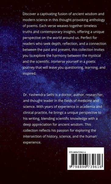 Vigyaved Superconsciousness is a collection of 108 poems that blends ancient spiritual wisdom with modern scientific insights. Drawing from the Vedas, Upanishads, quantum physics, neuroscience, and metaphysics, it explores universal questions about existence, consciousness, and reality, bridging spirituality with science. The anthology is rooted in the teachings of ancient Hindu texts, complemented by concepts from quantum mechanics, relativity, medicine, and neuroscience. Themes like quantum uncertainty, spiritual renunciation, and fate are explored, offering deep reflections on life's mysteries. The poems cover various themes: Cosmic Exploration: Poems like Uncertainty examine quantum mechanics and its connection to life's unpredictability. Time and Perception: Works such as The Illusion of Linear Time explore time's fluidity and destiny's role. Spiritual Growth: Renunciation reflects on detachment as a path to inner peace. Human Experience: Poems like The Anatomy of Love and Ambition's Dual Edge explore emotions and ambition. The collection aims to bridge ancient wisdom with modern science, promote intellectual and spiritual growth, and inspire self-discovery. It challenges conventional views on reality and perception, offering readers a transformative journey. Designed for thinkers, spiritual seekers, and poetry enthusiasts, The Vigyaved Superconsciousness invites readers to explore the intersection of science and spirituality.