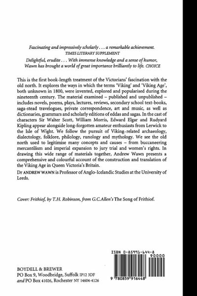 The first book-length treatment of C19 fascination with Norse heroes. This is the first book-length treatment of the Victorians' fascination with the old north. It explores the ways in which the terms 'Viking' and 'Viking Age', both unknown in 1800, were invented, explored and popularised during thenineteenth century. The material examined - published and unpublished - includes novels, poems, plays, lectures, reviews, secondary school textbooks, saga-stead travelogues, private correspondence, art and music, as well as dictionaries, grammars and scholarly editions of eddas and sagas. In the cast of characters Sir Walter Scott, William Morris, Edward Elgar and Rudyard Kipling appear alongside long-forgotten amateur enthusiasts from Lerwick to the Isleof Wight. We follow the pursuit of Viking-related archaeology, dialectology, folklore, philology, runology and mythology. We see the old north used to legitimise many concepts and causes - from buccaneering mercantilism and imperial expansion to jury trial and women's rights. In drawing this wide range of materials together, Andrew Wawn presents a comprehensive and colourful account of the construction and translation of the Viking Age in Queen Victoria'sBritain. ANDREW WAWN is Professor of Anglo-Icelandic Studies at the University of Leeds.