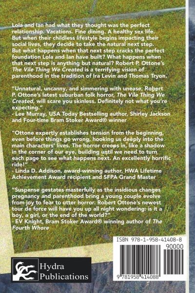 Lola and Ian had what they thought was the perfect relationship. Vacations. Fine dining. A healthy sex life. But when their childless lifestyle begins impacting their social lives, they decide to take the natural next step. But what happens when that next step cracks the perfect foundation Lola and Ian have built? What happens when that next step is anything but natural? Robert P. Ottone's The Vile Thing We Created is a terrifying vision of parenthood in the tradition of Ira Levin and Thomas Tryon.