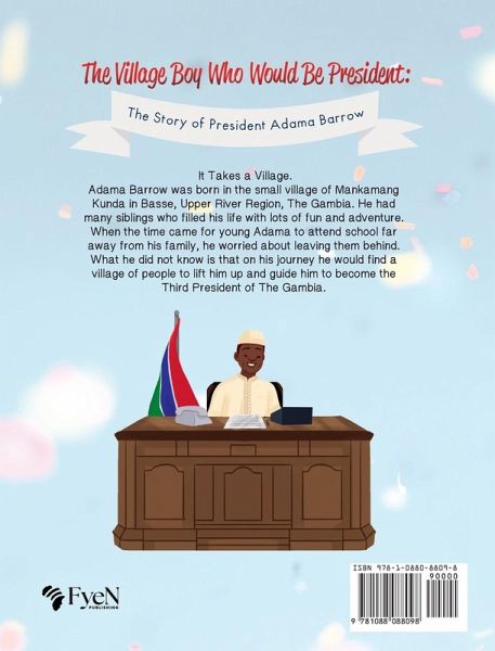 It Takes a Village The Adama Barrow Story Adama Barrow was born in the small village of Mankamang Kunda in Basse Santa Su, Upper River Region, The Gambia. He had many siblings who filled his life with lots of fun and adventure. When the time came for young Adama to attend school far away from his family, he worried about leaving them behind. What he did not know is that on his journey he would find a village of people to lift him up and guide him to become the Third President of The Gambia.