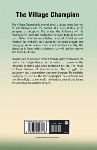 The Village Champion is a novel about a young man s journey of self-discovery and the pursuit of a new identity. After escaping a deceptive life under the influence of his manipulative uncle, the protagonist sets out to forge his own path. Determined to leave behind a world of trickery and mischief, he embarks on a quest for personal growth and belonging. As he learns more about his true identity, the character is faced with challenges that will test his resolve and shape his future. His decision to distance himself from his past symbolizes his desire for independence, as he seeks to overcome…mehr