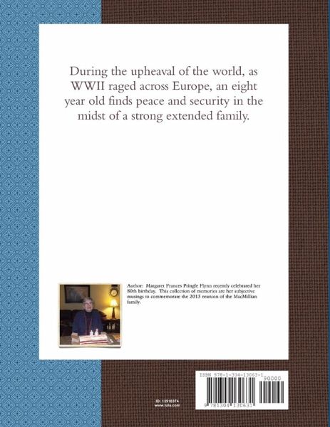 This collection of memories are the subjective musings of an eighty five year old woman who experienced the security of a strong extended family living in rural New Brunswick, Canada during the 1940's. She tells of life on the homestead, and the impact that WWII had on daily life. Told through the innocent eyes of an eight year old girl.