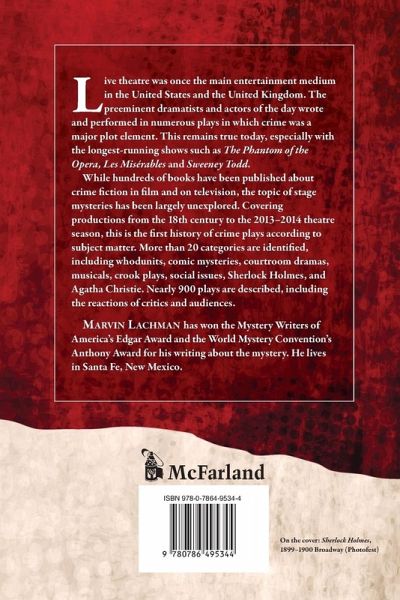 Live theatre was once the main entertainment medium in the United States and the United Kingdom. The preeminent dramatists and actors of the day wrote and performed in numerous plays in which crime was a major plot element. This remains true today, especially with the longest-running shows such as The Phantom of the Opera, Les Miserables and Sweeney Todd. While hundreds of books have been published about crime fiction in film and on television, the topic of stage mysteries has been largely unexplored. Covering productions from the 18th century to the 2013-2014 theatre season, this is the first history of crime plays according to subject matter. More than 20 categories are identified, including whodunits, comic mysteries, courtroom dramas, musicals, crook plays, social issues, Sherlock Holmes, and Agatha Christie. Nearly 900 plays are described, including the reactions of critics and audiences.