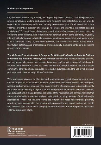 Organizations are ethically, morally, and legally required to maintain safe workplaces that protects employees, visitors and anyone who frequents their establishments. But why do organizations that employee uniformed security personnel as part of their overall workplace violence prevention program still struggle to create and maintain the safest possible workplaces? To meet these obligations organizations often employ uniformed security officers to deter, observe, and report criminal behavior, and in some contexts, they physically interact with dangerous individuals to protect employees, consumers and visitors from violent behaviors. Unfortunately, many organizations don't utilize their security personnel to their fullest potential and organizational and community members continue to be victims of workplace violence. This book identifies the flawed principles, policies and personnel decisions that organizations use, and it provides practical solutions to address them. The book covers two major themes: the misapplication of law enforcement community safety principles to private, free-market businesses and the use of risk aversive philosophies to their security officer's activities. This book covers the principles, policies and personnel necessary for maximizing the effectiveness of uniformed security personnel to successfully mitigate potential workplace violence and create and maintain safe organizations. There is a strong need for this book since workplace violence prevention has taken on a new focus due to increases in workplace violence incidents and new laws requiring organizations to take a more serious approach to workplace violence prevention. The healthcare and campus markets are most affected by these laws and are under public scrutiny because of their vulnerable populations. These two markets combined employ the most non-contract, propriety private security personnel in the country. Both markets rely on uniform security officers to create and maintain safe communities and play an important role in their respective workplace violence prevention plans.