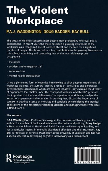 In recent years the workplace has emerged as a recognized site of violence, threat and menace and this book makes a significant contribution to the growing literature on workplace violence. Using innovative research methods, this book uniquely examines four of the most violence-prone occupations: the police; Accident and Emergency staff; social workers; mental health professionals.