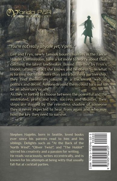 Leif and Fryn, newly famous bounty hunters in the Faerie Hunter Commission, have a lot more to worry about than catching their latest lawbreaker. Bound together by Fryn's bloodcrafting-a fact she knows and he doesn't-in what is turning out to be more than just a business partnership, they find themselves caught in a thickening web of politics and deceit. Anyone around them could turn out to be an adversary or ally. As they're forced to choose between the powerful and the mistreated, profit and loss, success and disaster, their steps are dogged by the relentless shadow of someone they'd never expected to hear from again and who may hold the key they need to survive.