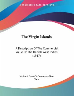 The Virgin Islands: A Description Of The Commercial Value Of The Danish West Indies is a book published in 1917 by the National Bank of Commerce in New York. The book provides a detailed description of the commercial value of the Danish West Indies, which includes the islands of St. Thomas, St. John, and St. Croix. The book covers a wide range of topics related to the economic potential of the islands, including agriculture, mining, fishing, and tourism. It also provides information on the history and culture of the islands, as well as their political and legal status as a Danish colony at the time. The book is written in a clear and concise style, making it accessible to a wide range of readers. It is a valuable resource for anyone interested in the history and economic development of the Virgin Islands.This scarce antiquarian book is a facsimile reprint of the old original and may contain some imperfections such as library marks and notations. Because we believe this work is culturally important, we have made it available as part of our commitment for protecting, preserving, and promoting the world's literature in affordable, high quality, modern editions, that are true to their original work.