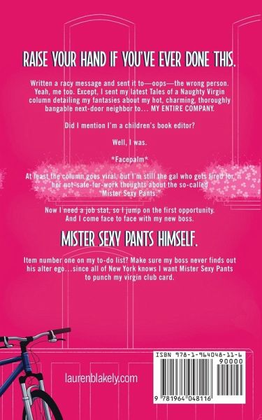 Raise your hand if you've ever done this. Written a racy message and sent it to-oops-the wrong person. Yeah, me too. Except, I sent my latest Tales of a Naughty Virgin column detailing my fantasies about my hot, charming, thoroughly bangable next-door-neighbor to...MY ENTIRE COMPANY. Did I mention I'm a children's book editor? Well, I was. *Facepalm* At least the column goes viral, but I'm still the gal who gets fired for her not-safe-for-work thoughts about the so-called "Mister Sexy Pants." Now I need a job stat, so I jump on the first opportunity. And I come face to face with my new boss. Mister Sexy Pants himself. Item number one on my to-do list? Make sure my boss never finds out his alter ego...since all of New York knows I want Mister Sexy Pants to punch my virgin club card. Number two? Don't fall for the man as I get to know my hot boss, who's kind, caring, sexy as sin. Contents Include: A sexy and clever romp of an MF, dual-POV, mistaken identity romantic comedy, complete with dating mishaps, sizzling sexual tension, a hot nerd boss hero, a chaotically delightful heroine, an awkward incident with glitter, and a virgin's NSFW to-do list.