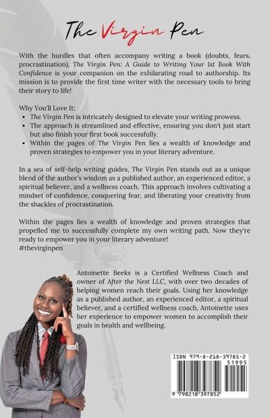 With the hurdles that often accompany writing a book (doubts, fears, procrastination), The Virgin Pen: A Guide to Writing Your 1st Book With Confidence is your companion on the exhilarating road to authorship. Its mission is to provide the first time writer with the necessary tools to bring their story to life! Why You'll Love It:The Virgin Pen is intricately designed to elevate your writing prowess. The approach is streamlined and effective, ensuring you don't just start but also finish your first book successfully. Within the pages of The Virgin Pen lies a wealth of knowledge and proven strategies to empower you in your literary adventure. In a sea of self-help writing guides, The Virgin Pen stands out as a unique blend of the author's wisdom as a published author, an experienced editor, a spiritual believer, and a wellness coach. This approach involves cultivating a mindset of confidence, conquering fear, and liberating your creativity from the shackles of procrastination. Within the pages lies a wealth of knowledge and proven strategies that propelled me to successfully complete my own writing path. Now they're ready to empower you in your literary adventure! #thevirginpen