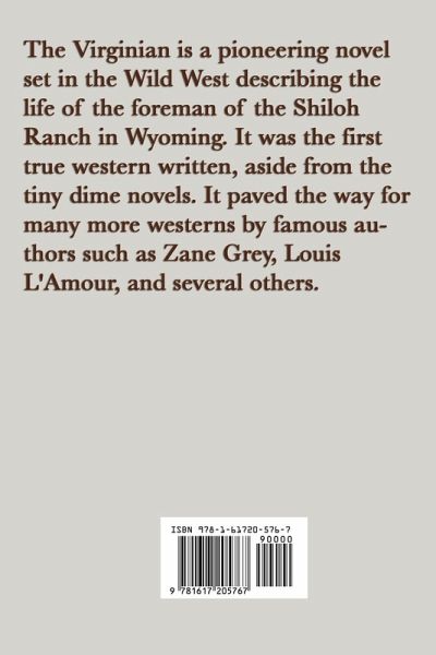 The Virginian is a pioneering novel set in the Wild West describing the life of the foreman of the Shiloh Ranch in Wyoming. It was the first true western written, aside from the tiny dime novels. It paved the way for many more westerns by famous authors such as Zane Grey, Louis L'Amour, and several others.