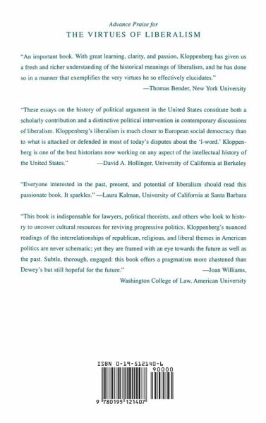 This spirited analysis and defence of American liberalism demonstrates the complex and rich traditions of political, economic, and social discourse that have informed American democratic culture from the seventeenth century to the present. The Virtues of Liberalism provides a convincing response to critics right and left. In contrast to prevailing tendencies to simplify and distort American liberalism, Kloppenberg shows how the multifaceted virtues of liberalism have inspired theorists and reformers from Jefferson and Madison through Jane Addams and John Dewey to Martin Luther King Jr., and how these virtues persist in the work of liberal democrats today. Endorsing the efforts of such neo-progressive and communitarian theorists and journalists as Michael Walzer, Jane Mansbridge, and Michael Sandel, Kloppenberg adds a more acute analysis of the historical development of American liberalism and of the complex reasons why it has been transformed and made more vulnerable in recent decades. At a time when conservatives join radicals in distorting the development of liberalism and underestimating its resources, Kloppenberg offers a probing historical analysis and reassessment of the theory and practice of liberalism today.