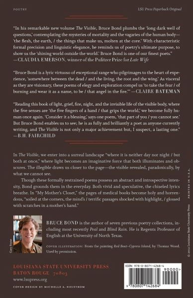In The Visible, we enter into a surreal landscape "where it is neither day nor night / but both at once," where light becomes an imaginative force that both illuminates and obscures. The illegible draws us closer to the page-the visible revealed, paradoxically, by what we cannot see. Though these formally restrained poems possess an abstract and introspective intensity, Bond grounds them in the everyday. Both vivid and speculative, the chiseled lyrics breathe. In "My Mother's Closet," the pages of medical books become holy and horrendous, "soiled at the corners, the mind's / terrific passages shocked with highlight, / glossed with scratches in a mother's hand."