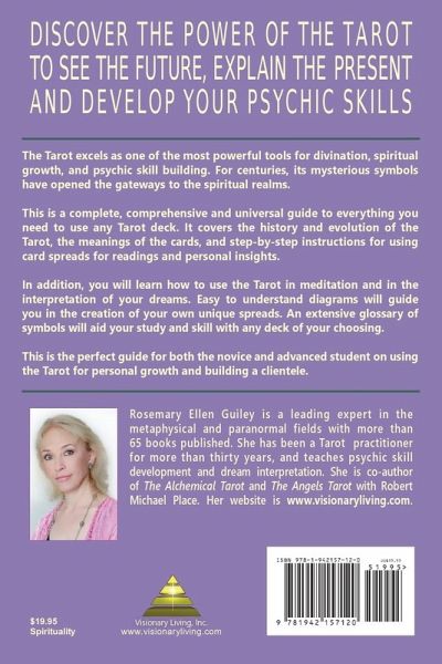 Discover the power of the tarot to see the future, explain the present and develop your psychic skills. The Tarot excels as one of the most powerful tools for divination, spiritual growth, and psychic skill building. For centuries, its mysterious symbols have opened the gateways to the spiritual realms. This is a complete, comprehensive and universal guide to everything you need to use any Tarot deck. It covers the history and evolution of the Tarot, the meanings of the cards, and step-by-step instructions for using card spreads for readings and personal insights. In addition, you will learn how to use the Tarot in meditation and in the interpretation of your dreams. Easy to understand diagrams will guide you in the creation of your own unique spreads. An extensive glossary of symbols will aid your study and skill with any deck of your choosing. This is the perfect guide for both novice and advanced student on using the Tarot for personal growth and building a clientele.