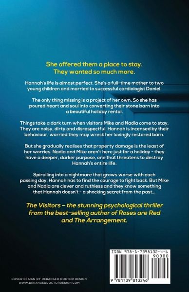 She offered them a place to stay. They wanted so much more. Hannah's life is almost perfect. She's a full-time mother to two young children and married to successful cardiologist Daniel. The only thing missing is a project of her own. So she has poured heart and soul into converting their stone barn into a beautiful holiday rental. Things take a dark turn when visitors Mike and Nadia come to stay. They are noisy, dirty and disrespectful. Hannah is incensed by their behaviour, worried they may wreck her lovingly restored barn. But she gradually realises that property damage is the least of her worries. Nadia and Mike aren't here just for a holiday - they have a deeper, darker purpose, one that threatens to destroy Hannah's entire life. Spiralling into a nightmare that grows worse with each passing day, Hannah has to find the courage to fight back. But Mike and Nadia are clever and ruthless and they know something that Hannah doesn't - a shocking secret from the past...
