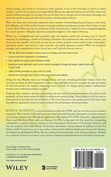 JOHN J. MURPHY is a former technical analyst for CNBC and has over forty years of market experience. He is the face of StockCharts.com, which provides financial information to online investors via technical analysis tools. Murphy has appeared on Bloomberg TV, CNN's Moneyline, Nightly Business Report, and Wall $treet Week with Louis Rukeyser. In 1992, he was given the first award for outstanding contribution to global technical analysis by the International Federation of Technical Analysts, and was the recipient of the 2002 Market Technicians Association Annual Award. In addition to the First Edition of The Visual Investor, he is also author of Intermarket Technical Analysis and Intermarket Analysis, all of which are published by Wiley. He also authored Technical Analysis of the Financial Markets. Murphy has a bachelor of arts in economics and a master of business administration from Fordham University.