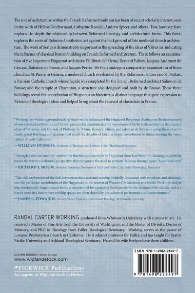 The role of architecture within the French Reformed tradition has been of recent scholarly interest, seen in the work of Helene Guicharnaud, Catharine Randall, Andrew Spicer, and others. Few, however, have explored in depth the relationship between Reformed theology and architectural forms. This thesis explores the roots of Reformed aesthetics, set against the background of late medieval church architecture. The work of Serlio is demonstrably important in the spreading of the ideas of Vitruvius, indicating the influence of classical Roman building on French Reformed architecture. There follows an examination of five important Huguenot architects: Philibert de l'Orme, Bernard Palissy, Jacques-Androuet du Cerceau, Salomon de Brosse, and Jacques Perret. We then undergo a comparative examination of three churches: St. Pierre in Geneva, a medieval church overhauled by the Reformers; St. Gervais-St. Protais, a Parisian Catholic church whose facade was completed by the French Reformed architect Salomon de Brosse; and the temple at Charenton, a structure also designed and built by de Brosse. These three buildings reveal the contribution of Huguenot architecture, a distinct language that gave expression to Reformed theological ideas and helped bring about the renewal of classicism in France.