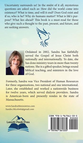 Uncertainty surrounds us! In the midst of it all, mysterious questions are asked such as: How did the world come into existence? What is time, and will it end? Does God exist and if so, who is he? Why do humans matter? What is life's purpose? What lies ahead? This book is a must-read for those who give such a thought to the past, present, and future, and are seeking answers.