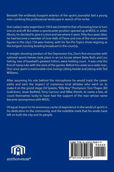 Beneath the endlessly buoyant exterior of the sports journalist laid a young man combing the professional landscape in search of his niche. Don Ladas's radio expertise in 1954 was limited to that of knowing how to turn one on and off. But when a sportscaster position opened up at WJOL in Joliet, Illinois, he decided to give it a shot and see where it went. Fifty-four years later, he had become a member of nine Halls of Fame and one of the most revered figures in the city's 156-year history, with his Ten Pin Topics show reigning as the longest-running bowling broadcast in the country. A straight-shooting product of the Depression Era, Don's first encounter with national sports heroes took place in an ice house where Babe Ruth and Lou Gehrig, two of baseball's greatest hitters, were holding court. It was only the first of many rubs with the stars of the games. Before his career as a radio man, Don once spent a memorable nine innings sitting beside and joking with Ted Williams. After assuming his role behind the microphone he would track the career paths and earn the respect of numerous local athletes who went on to make it on the grand stage: Ed Spiezio, "Billy Boy" Thompson, Tom Thayer, Bill Gullickson, Jesse Barfield, Terry Gannon and Mike Alstott, to name a few, all count themselves lucky to have had the support of the man whose name became synonymous with WJOL. Of equal import to his enormous cache of experience in the world of sports is his dedication to the community, and the indelible mark that his works have left on both the city and its people.