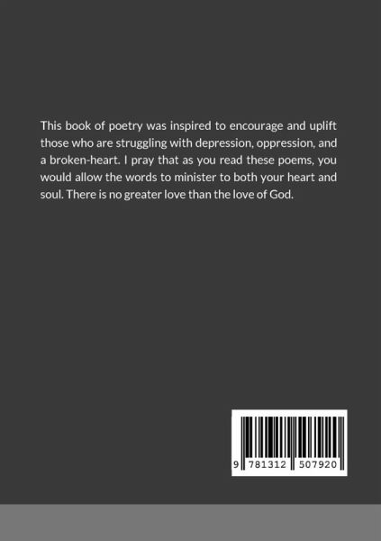 If you feel as though you have come to your wit's end with all of the chaos in the world, then this book of inspirational poems is for you! The poetry is heart-felt and will uplift your spirit on any given day. As you read these poems, please allow them to touch your heart and revive your soul. There is no greater love than the love of God, and remember, you are not alone.