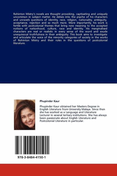 Rohinton Mistry s novels are thought provoking, captivating and uniquely uncommon in subject matter. He delves into the psyche of his characters and unravels questions of identity, race, religion, nationality, ambiguity, acceptance, rejection and so much more. More importantly, his work is fertile with postcolonial themes that bring new meaning to the accepted notions of nationhood, culture, race and identity. His marginalised characters are real or realistic in every sense of the word and exude unequivocal truthfulness in their ambiguity. This book aims to investigate and articulate the voice of the minority categories of society in the works of Rohinton Mistry and their roles in the questions of postcolonial literature.