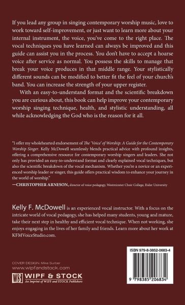 If you lead any group in singing contemporary worship music, love to work toward self-improvement, or just want to learn more about your internal instrument, the voice, you've come to the right place. The vocal techniques you have learned can always be improved and this guide can assist you in the process. You don't have to accept a hoarse voice after service as normal. You possess the skills to manage that break your voice produces in that middle range. Your stylistically different sounds can be modified to better fit the feel of your church's band. You can increase the strength of your upper register. With an easy-to-understand format and the scientific breakdown you are curious about, this book can help improve your contemporary worship singing technique, health, and stylistic understanding, all while acknowledging the God who is the reason for it all.