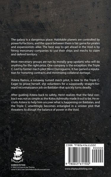 The galaxy is a dangerous place. Habitable planets are controlled by powerful factions, and the space between them is fair game for pirates and expansionists alike. The best way to get ahead in the Void is by hiring mercenary companies to use their ships and mechs to claim and defend territory. Most mercenary groups are run by morally gray upstarts who will do anything for the right price. One company is the exception: the Triple C. Led by former mech pilot Henri Durroguerre, it has gained a reputation for honoring contracts and minimizing collateral damage. Astera Ramos, a runaway turned mech pilot, is new to the Triple C. Eager to prove herself, she volunteers for a supposedly straight-forward reconnaissance job on Baldalan that quickly turns deadly. After guiding Astera back to safety, Henri realizes that the fatal contract was not as simple as the Kolos Admiralty made it out to be. He recruits Astera to help him uncover what is happening on Baldalan, and the Triple C unwittingly becomes entangled in a sinister plot that threatens to disrupt the balance of power in the Void.