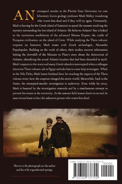 An attempted murder at the Florida State University ice core laboratory leaves geology professor Mark Malloy wondering who wants him dead and if they will try again. Fortunately, Mark is leaving for the Greek island of Santorini to spend the summer resolving the mystery surrounding the lost island of Atlantis. He believes Atlantis' fate is linked to the mysterious annihilation of the advanced Minoan Empire, the cradle of European civilization, on the island of Crete. While studying the Thera volcanic eruption on Santorini, Mark teams with Greek archeologist, Alexandra Papadopulos. As the summer field season draws to an end, he must return home to face the unknown person who wants him dead.