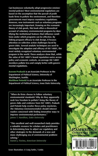 Can businesses voluntarily adopt progressive environmental policies? Most environmental regulations are based on the assumption that the pursuit of profit leads firms to pollute the environment, and therefore governments must impose mandatory regulations. However, new instruments such as voluntary programs are increasingly important. Drawing on the economic theory of club goods, this book offers a theoretical account of voluntary environmental programs by identifying the institutional features that influence conditions under which programs can be effective. By linking program efficacy to club design, it focuses attention on collective action challenges faced by green clubs. Several analytic techniques are used to investigate the adoption and efficacy of ISO 14001, the most widely recognized voluntary environmental program in the world. These analyses show that, while the value of ISO 14001's brand reputation varies across policy and economic contexts, on average ISO 14001 members pollute less and comply better with governmental regulations.