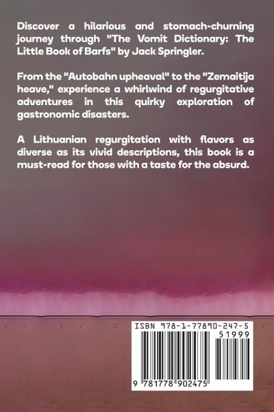 Embark on a stomach-churning journey through "The Vomit Dictionary: The Little Book of Barfs," a quirky exploration of gastronomic disasters with hilarious descriptions.