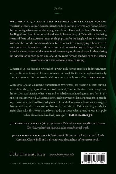 Published in 1924 and widely acknowledged as a major work of twentieth-century Latin American literature, José Eustasio Rivera's The Vortex follows the harrowing adventures of the young poet Arturo Cova and his lover Alicia as they flee Bogotá and head into the wild and woolly backcountry of Colombia. After being separated from Alicia, Arturo leaves the high plains for the jungle, where he witnesses firsthand the horrid conditions of those forced or tricked into tapping rubber trees. A story populated by con men, rubber barons, and the unrelenting landscape, The Vortex is both a denunciation of the sensational human-rights abuses that took place during the Amazonian rubber boom and one of the most famous renderings of the natural environment in Latin American literary history.