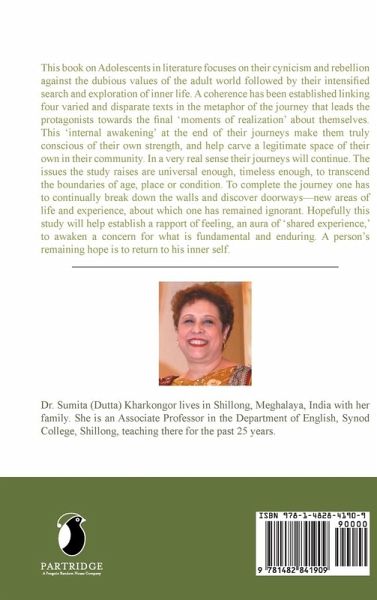 This book on Adolescents in literature focuses on their cynicism and rebellion against the dubious values of the adult world followed by their intensified search and exploration of inner life. A coherence has been established linking four varied and disparate texts in the metaphor of the journey that leads the protagonists towards the final 'moments of realization' about themselves. This 'internal awakening' at the end of their journeys make them truly conscious of their own strength, and help carve a legitimate space of their own in their community. In a very real sense their journeys will continue. The issues the study raises are universal enough, timeless enough, to transcend the boundaries of age, place or condition. To complete the journey one has to continually break down the walls and discover doorways-new areas of life and experience, about which one has remained ignorant. Hopefully this study will help establish a rapport of feeling, an aura of 'shared experience,' to awaken a concern for what is fundamental and enduring. A person's remaining hope is to return to his inner self.