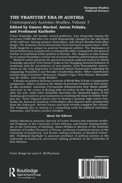 Franz Vranitzky, the banker turned politician, was chancellor during the ten years (1986-96) when the world dramatically changed in the aftermath of the cold war. Among postwar chancellors, only Bruno Kreisky held office longer. The Austrian Social Democratic Party has been in power since 1970. Such longevity is unique in postwar European politics. The dominance of Social Democracy in particular is noteworthy when compared to the general decline of traditional leftist politics in Europe. The chapters in this volume try to assess Vranitzky's central role in recent Austrian and European history.