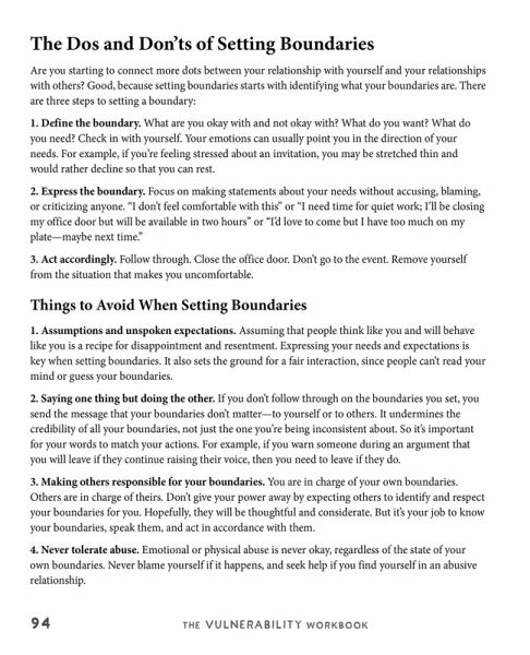 The word "vulnerability" is scary. We're taught that letting people close to you and showing your true self can result in heartbreak, trauma, and loss. But vulnerability, when approached in a safe way and anchored in self-trust, can be the key to healthy, long-lasting relationships. The Vulnerability Workbook gives you actionable tools to help you deconstruct vulnerability and turn it into a practice that will enrich your life and relationships. Inside this workbook, you'll explore the 10 core pillars of vulnerability, including: * Setting a vision and intentions * Cultivating self-awareness * Building shame resilience * Establishing healthy boundaries * Holding space for others * And more! Then, learn why each pillar is important and how you can practice putting them into action in your own life through self-reflection exercises, journaling prompts, and interactive activities. The Vulnerability Workbook is the perfect resource for anyone seeking to embrace their vulnerability and make their relationship with themselves and others the best they can be.