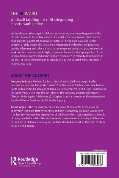 Prospera Tedam is the lead for Social Work Practice Quality at Anglia Ruskin University where she has worked since 2016. Her research interests include human rights with a particular focus on children, cultural competency, legal frameworks. She is also the Chair of the voluntary organisation Afruca (Africans Unite Against Child Abuse). Prospera is also a member of the Independent Families Returns Panel for the UK Border Agency. Awura Adjoa is the pseudonym chosen by this author in order to maintain her annonymity. Originally from West Africa and now a University graduate, Awura sees it as her duty to share her experiences of childhood which was disrupted as a result of being labelled a witch. She has a renewed commitment to making a difference in the lives of children who may be similarly affected or at risk of this form of abuse in the UK and abroad.