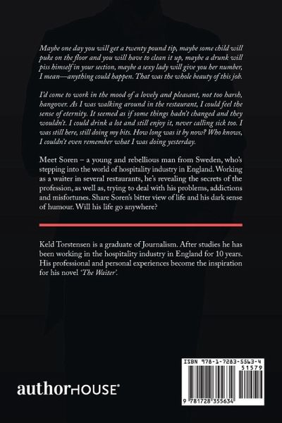 Maybe one day you will get a twenty pound tip, maybe some child will puke on the floor and you will have to clean it up, maybe a drunk will piss himself in your section, maybe a sexy lady will give you her number, I mean-anything could happen. That was the whole beauty of this job. I'd come to work in the mood of a lovely and pleasant, not too harsh, hangover. As I was walking around in the restaurant, I could feel the sense of eternity. It seemed as if some things hadn't changed and they wouldn't. I could drink a lot and still enjoy it, never calling sick too. I was still here, still doing my bits. How long was it by now? Who knows, I couldn't even remember what I was doing yesterday. Meet Soren - a young and rebellious man from Sweden, who's stepping into the world of hospitality industry in England. Working as a waiter in several restaurants, he's revealing the secrets of the profession, as well as, trying to deal with his problems, addictions and misfortunes. Share Soren's bitter view of life and his dark sense of humour. Will his life go anywhere?