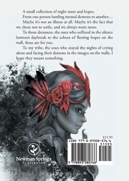 A small collection of night rants and hopes. From one person battling mental demons to another... Maybe it's not an illness at all. Maybe it's the fact that we chose not to settle, and we always want more. To those dreamers, the ones who suffered in the silence between daybreak to the echoes of fleeting hopes on the wall, these are for you. To my tribe, the ones who stayed the nights of crying alone and facing their demons in the images on the walls, I hope they meant something.