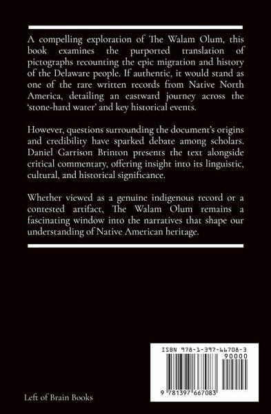 A compelling exploration of The Walam Olum, this book examines the purported translation of pictographs recounting the epic migration and history of the Delaware people. If authentic, it would stand as one of the rare written records from Native North America, detailing an eastward journey across the 'stone-hard water' and key historical events. However, questions surrounding the document's origins and credibility have sparked debate among scholars. Daniel Garrison Brinton presents the text alongside critical commentary, offering insight into its linguistic, cultural, and historical significance. Whether viewed as a genuine indigenous record or a contested artifact, The Walam Olum remains a fascinating window into the narratives that shape our understanding of Native American heritage.