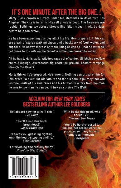 It's one minute after the Big One. Marty Slack, a TV network executive, crawls out from under his Mercedes, parked outside what once was a downtown Los Angeles warehouse, the location for a new TV show. Downtown LA is in ruins. The sky is thick with black smoke. His cell phone is dead. The freeways are rubble. The airport is demolished. Buildings lay across streets like fallen trees. It will be days before help can arrive. Marty has been expecting this day all his life. He's prepared. In his car are a pair of sturdy walking shoes and a backpack of food, water, and supplies. He knows there is only one thing he can do ... that he must do: get home to his wife Beth, go back to their gated community on the far edge of the San Fernando Valley. All he has to do is walk. But he will quickly learn that it's not that easy. His dangerous, unpredictable journey home will take him through the different worlds of what was once Los Angeles. Wildfires rage out of control. Flood waters burst through collapsed dams. Natural gas explosions consume neighborhoods. Sinkholes swallow entire buildings. After-shocks rip apart the ground. Looters rampage through the streets. There's no power. No running water. No order. Marty Slack thinks he's prepared. He's wrong. Nothing can prepare him for this ordeal, a quest for his family and for his soul, a journey that will test the limits of his endurance and his humanity, a trek from the man he was to the man he can be ... if he can survive The Walk.