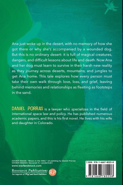 Ana just woke up in the desert, with no memory of how she got there or why she's accompanied by a wounded dog. But this is no ordinary desert: it is full of magical creatures, dangers, and difficult lessons about life and death. Now Ana and her dog must learn to survive in their harsh new reality as they journey across deserts, mountains, and jungles to get Ana home. This tale explores how every person must take their own walk through love, loss, and grief, leaving behind memories and relationships as fleeting as footsteps in the sand.