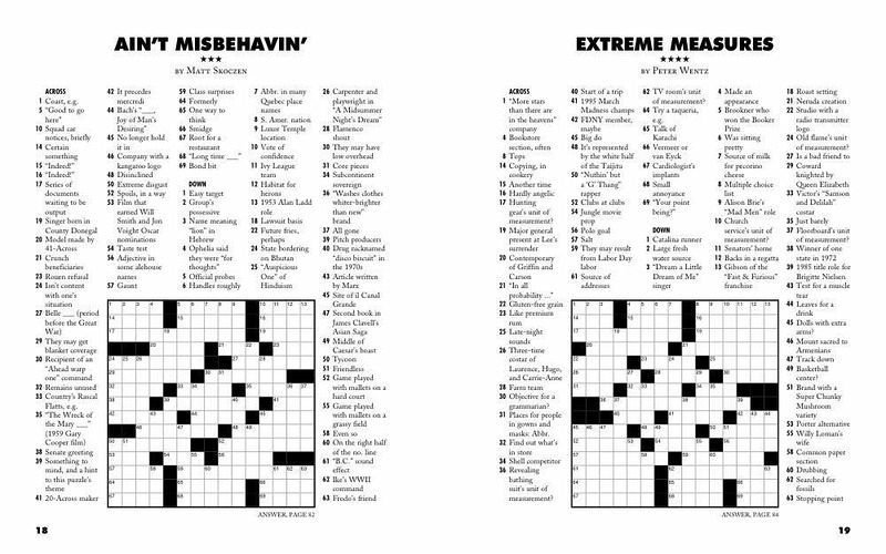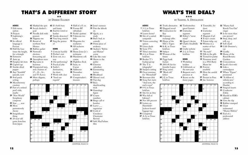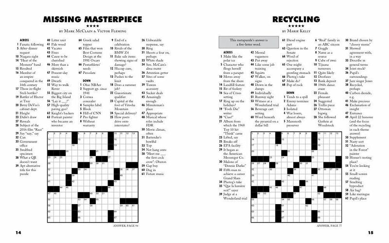 Try your hand at these 72 daily crosswords, from easy Monday to very special Friday, all created by a roster of the nation's best constructors. Friday's puzzle offers a unique challenge: a metapuzzle for you to solve. This "puzzle within a puzzle" usually consists of a single word or a phrase, such as a celebrity's name, a country, or a movie title.