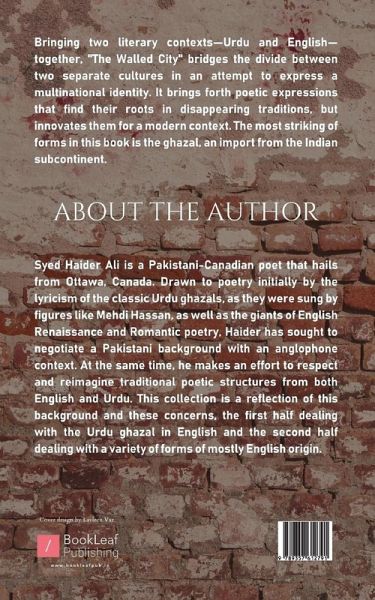 Bringing two literary contexts-Urdu and English-together, "The Walled City" bridges the divide between two separate cultures in an attempt to express a multinational identity. It brings forth poetic expressions that find their roots in disappearing traditions, but innovates them for a modern context. The most striking of forms in this book is the ghazal, an import from the Indian subcontinent.
