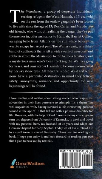 The Wanderers, a group of desperate individuals seeking refuge in the West. Hannah, a 17-year-old on the run from the outlaw gang she's been forced to live with since the age of 13; Doc Carter and Maude two old friends, who without realizing the danger they've put themselves in, offer assistance to Hannah; Harriet Collier, an aging belle from Atlanta on the run, since before the war, to escape her secret past; the Walters gang, a ruthless band of cutthroats that's left a wide swath of murders and robberies from the Mississippi to the Arizona territory; and a mysterious man who's been tracking the Walters gang for years, and runs across Hannah to become mesmerized by her sky stone eyes. All their trails head West and while none have a particular destination in mind they believe safety, anonymity, romance and opportunity for new beginnings will be found.